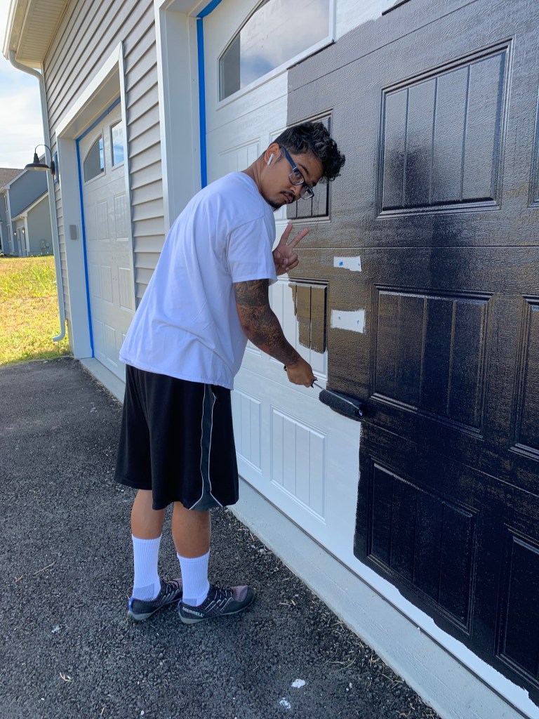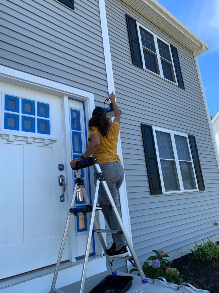 We wanted the garage doors as well as the front door and panels matte black. After looking at a few exterior paint brands and a helpful suggestion from our neighbors we decided to use Behr Exterior paint. There are 3 levels of Behr exterior paint, based on fade resistance and weathering. Since we live in New England, we chose the top tier level –Marquee.