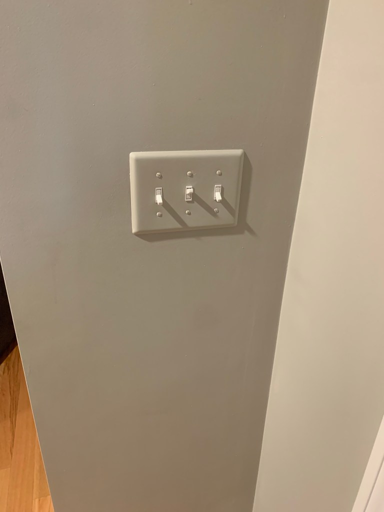 While the kids and I painted, Cruz worked on fixing the positions of the light switches. They were all crooked, and he had to adjust all of them to be parallel in order for the new covers to rest correctly in place.
