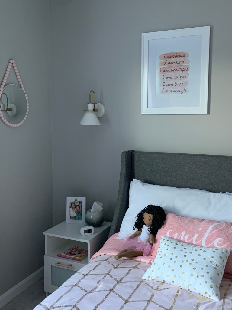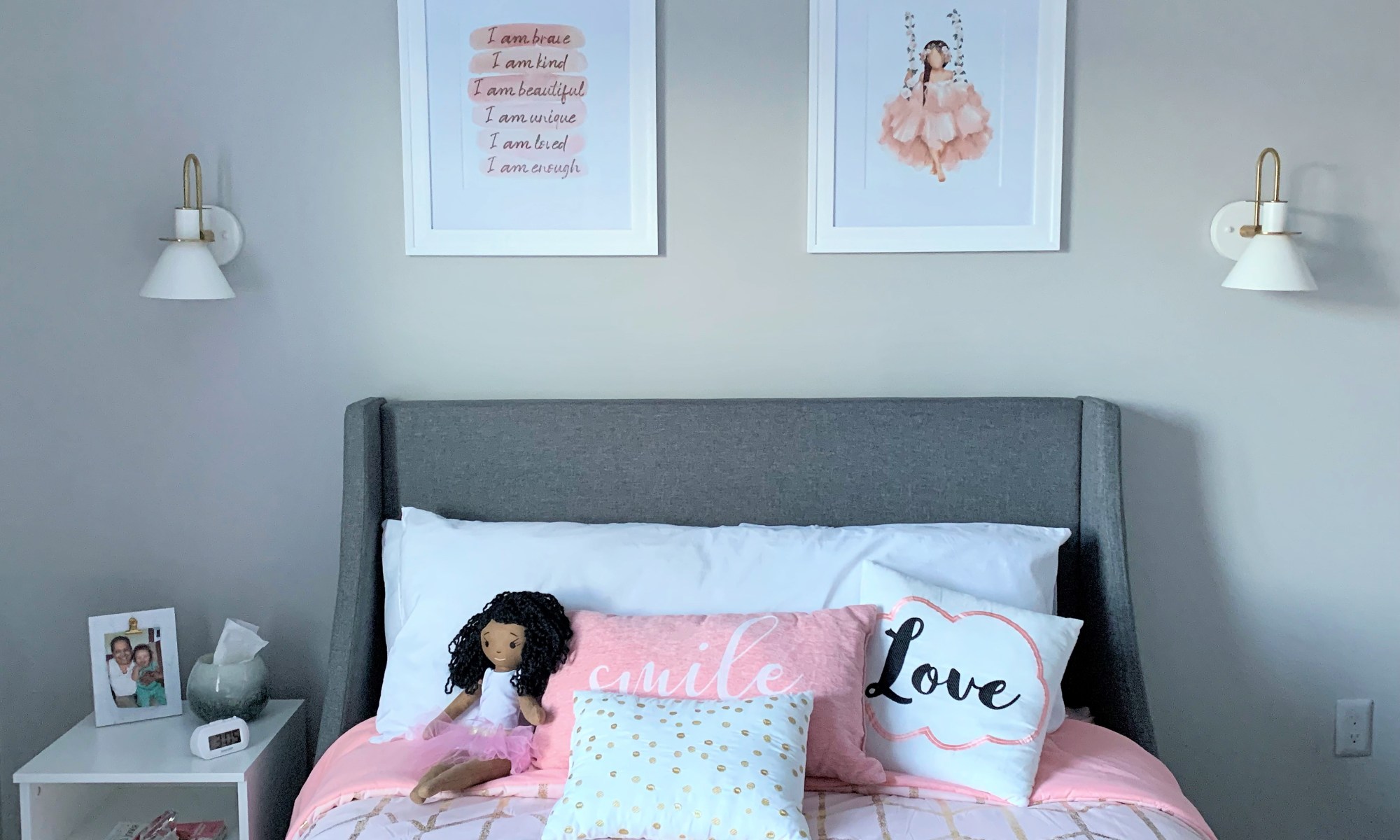 Nothing is worse than a space your kids don’t use. Allowing them to have a say in the design process makes them more connected to the room and the decor that’s added to it. Having my daughter weigh in on her favorite picks for decor items and choose the colors of her room (she did not want any florals and was very against patterns, no matter how many I showed her) gave her a sense of pride in her room. She also takes a lot of care for the items, because she feels like she helped to design it.