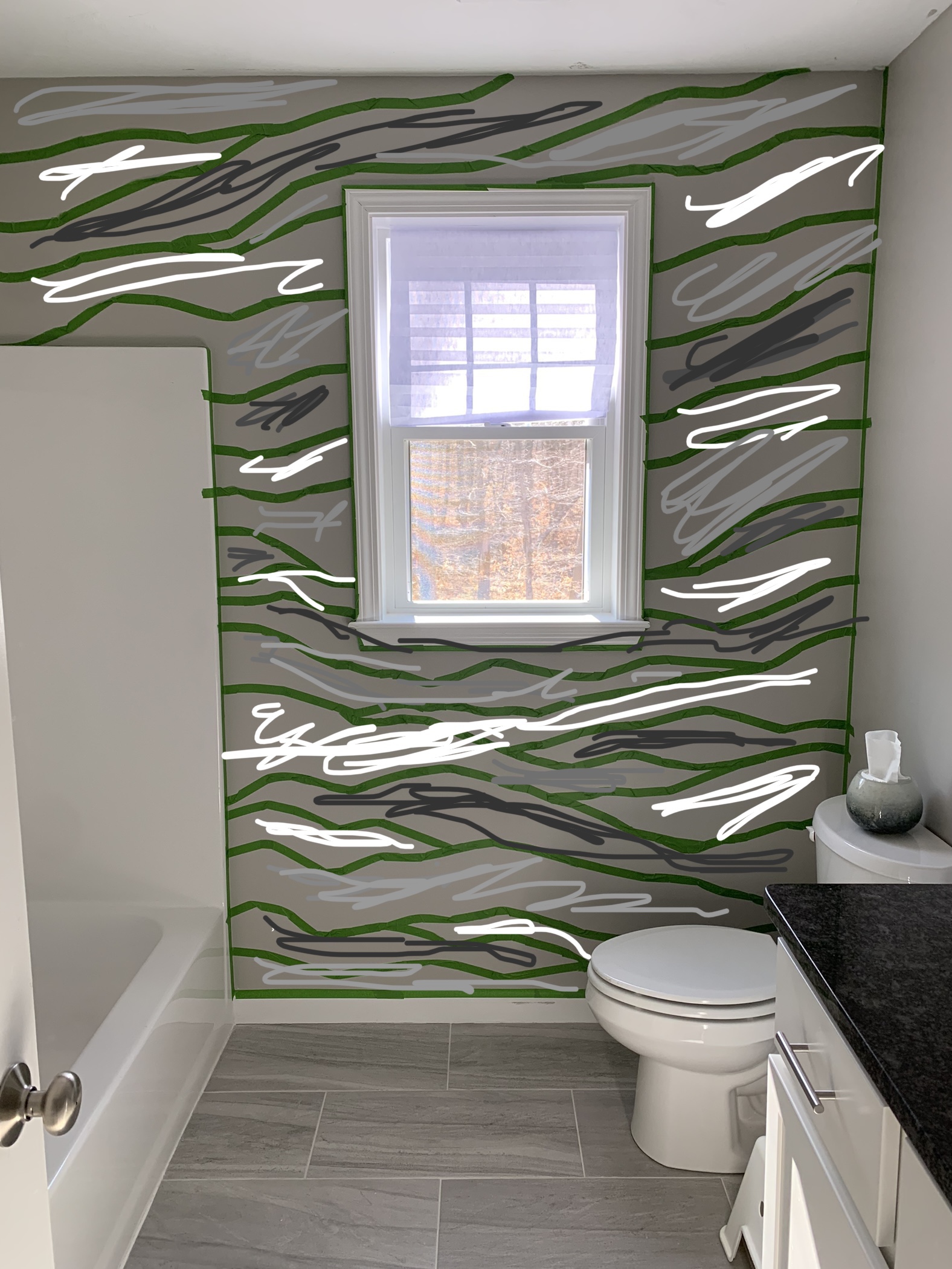 For this project I took a photo of the space and used my iPhone to draw on the wall and plan the color layout of each paint.