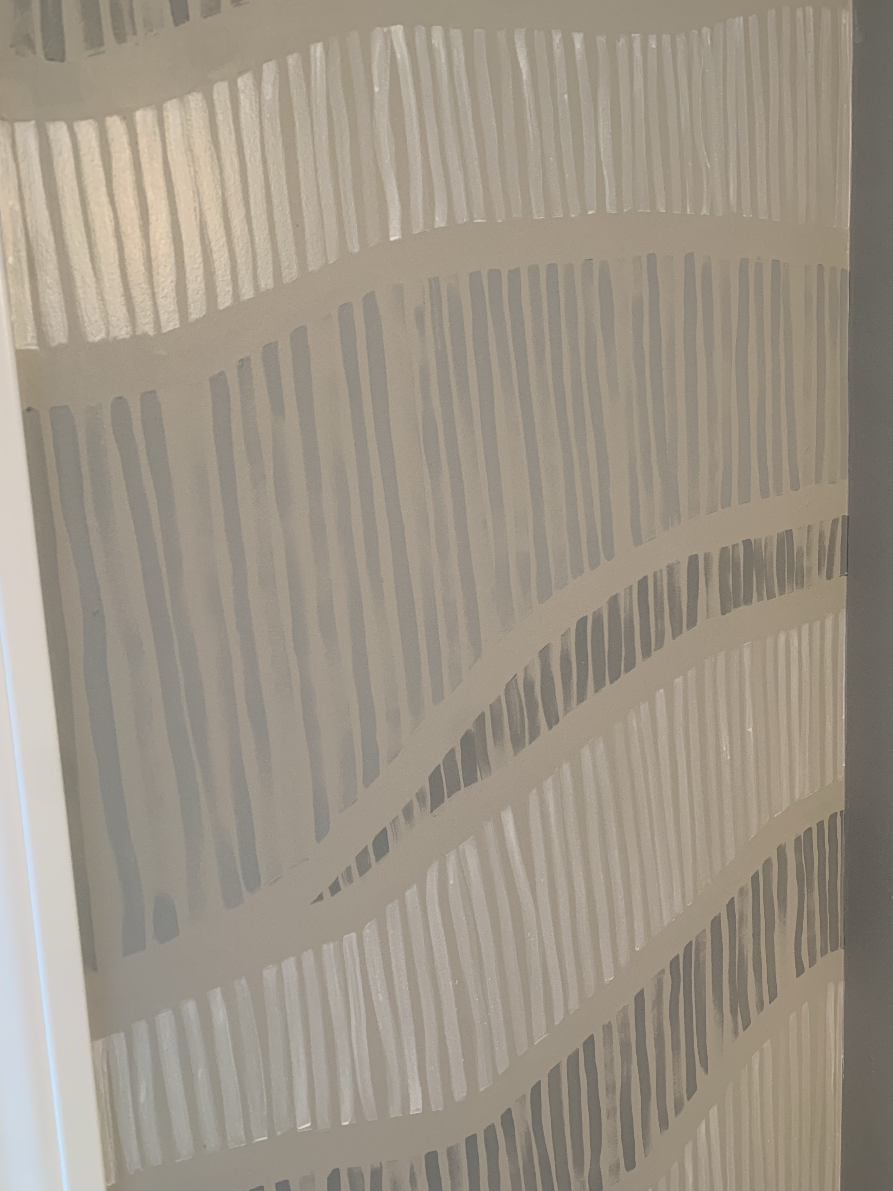 Use the correct paint: My last tip is to use the correct paint. I’ve seen some people use acrylic paint on their walls, although this is an option, I prefer to use house paint. I like to pick the finish that matches the rest of the wall finishes in the room. For the accent wall I used satin finish interior wall paint. I diluted the paint with water to achieve a slightly lighter tone of white and mixed the white paint into the grey paints to achieve lighter hues of grey.