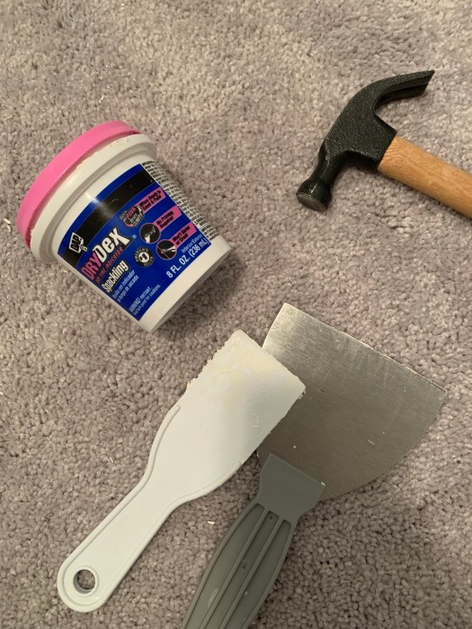 I use the color changing spackle, so I know when it’s dry and ready to sand.