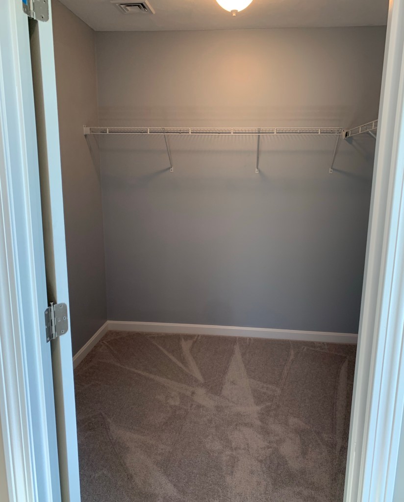 So for now we are fixing a builder grade issue. Our current closet had 2 wire racks that went around the closet. We were fine with this set up for the time being. Unfortunately our builder didnโt install the wire racks correctly and one of the racks collapsed, leaving most of our clothing on the floor and holes and broken brackets in the wall where the rack fell off. The 2nd rack is buckled and half broken, so we have taken the clothing off that rack as well.