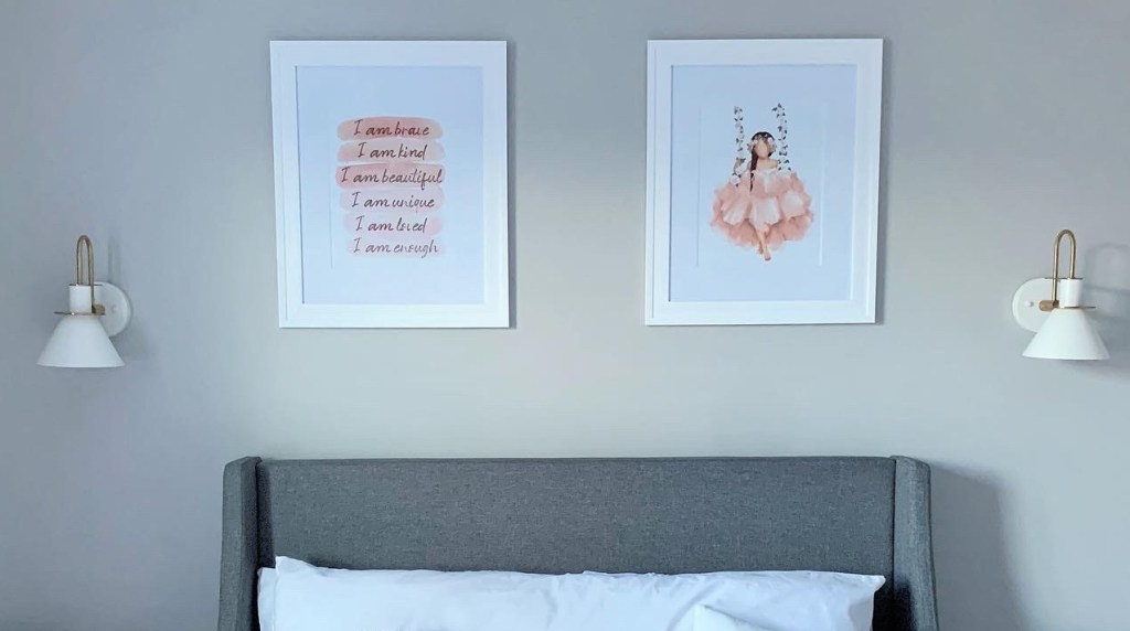 If you chose to make your own art or frame existing photos and images you already have, Michaelโs and Hobby Lobby have coupons as well as 40-50% off / BOGO sales on frames throughout the year that make them affordable.
