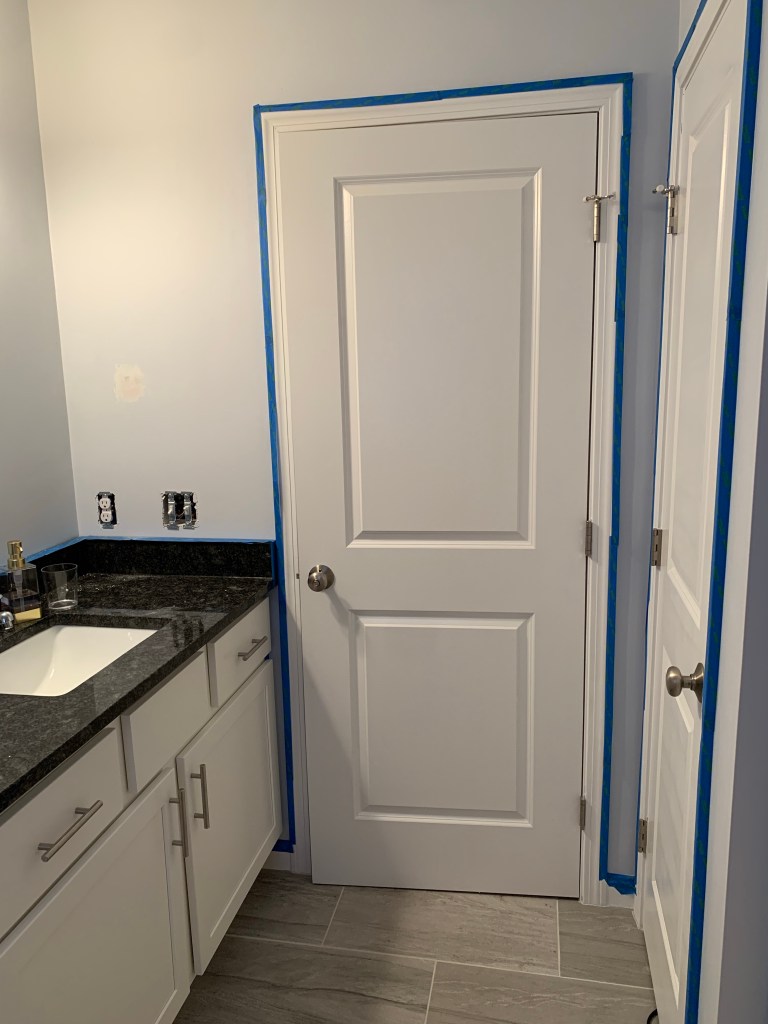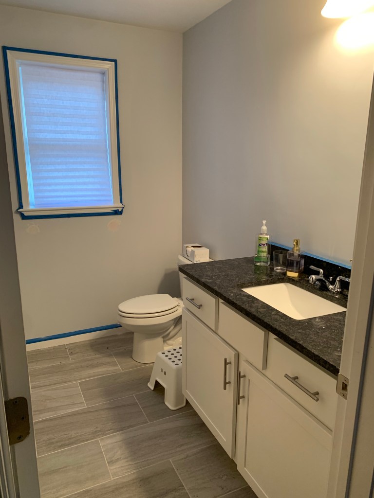 It was a simple builder grade bathroomI didn’t like the blue on the walls and knew a lot needed to change.