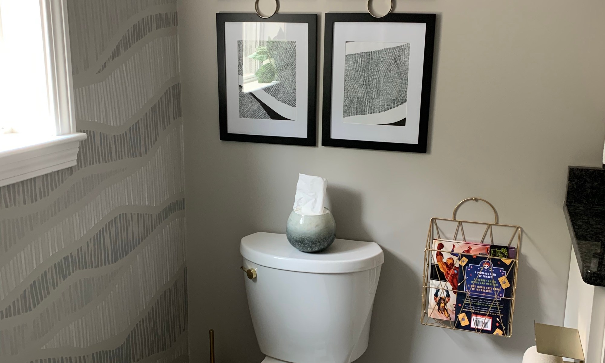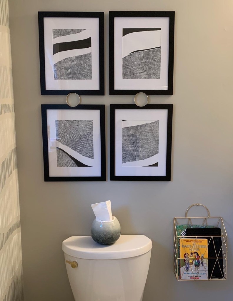 I decided to replace the tissue boxes with decorative glass bowls. I found a pair of grey ombrรฉ glass bowls at Home Goods and knew they would look good in both rooms.
