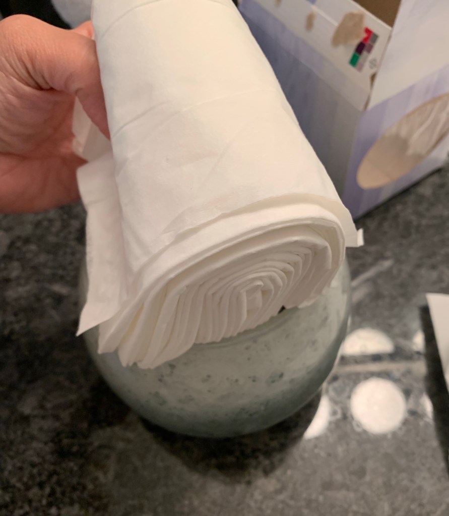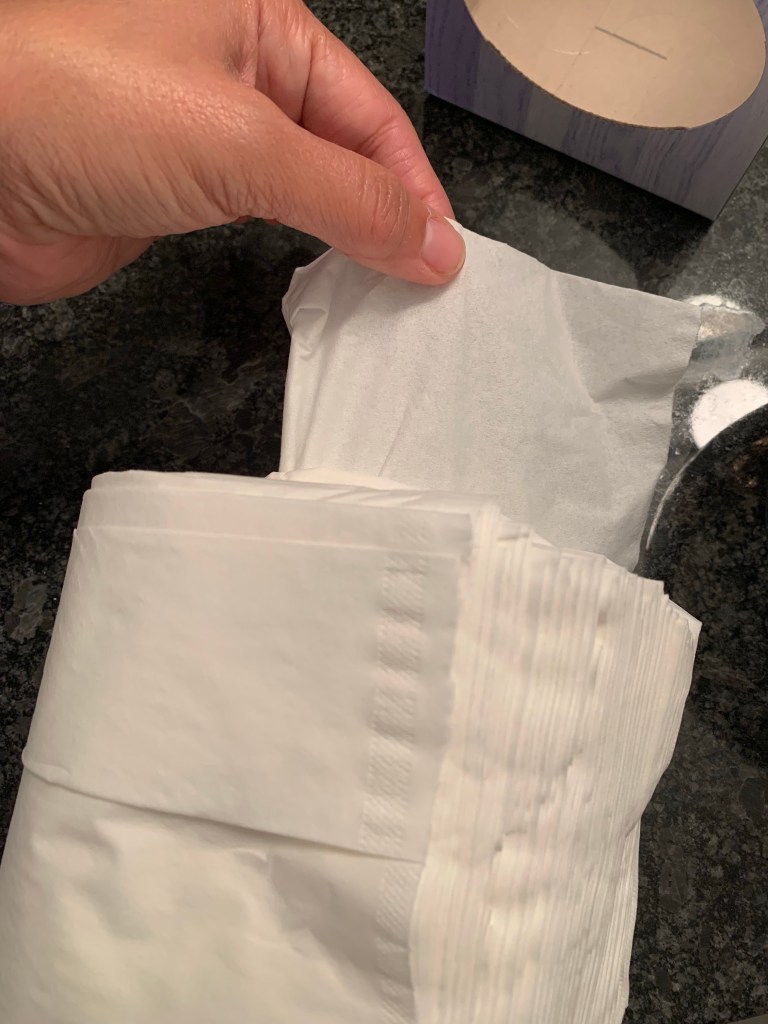 3. Depending on the size of your container, you may need to take some of the tissues out of your stack.