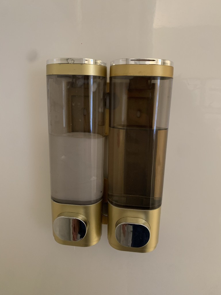 When I designed my children’s bathroom this year, I knew one thing I wanted in their shower/bath was a shampoo and conditioner dispenser.
