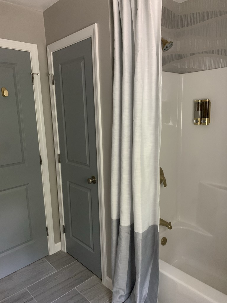 What a great idea – they don’t sit on the rim of the tub collecting goo. I *love* your shower curtain, did you make it?