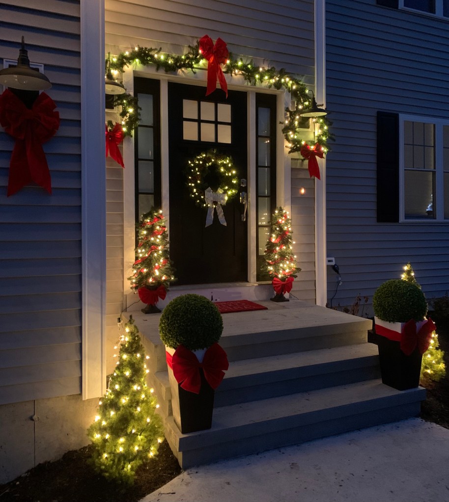I waited another 24 hours for the Flex Seal to completely dry and then added the faux boxwood to the poles. I’ m very happy with how solid the top cover feels and how secure the base is within the planter.