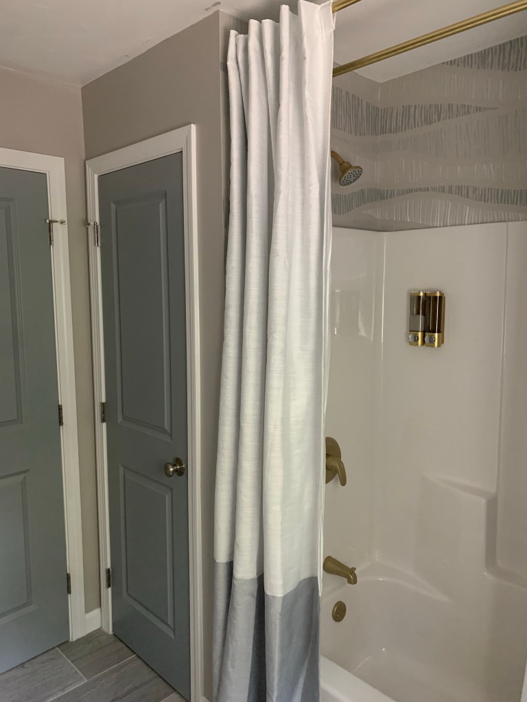 What I didnโt think about when finishing the bathroom design last year was the lack of a washcloth rack in their shower unit. For some reason our builder decided to exclude them from all the showers in our home. Draping washcloths over the side of the tub and curtain rods is not ideal. So I had to find a solution.