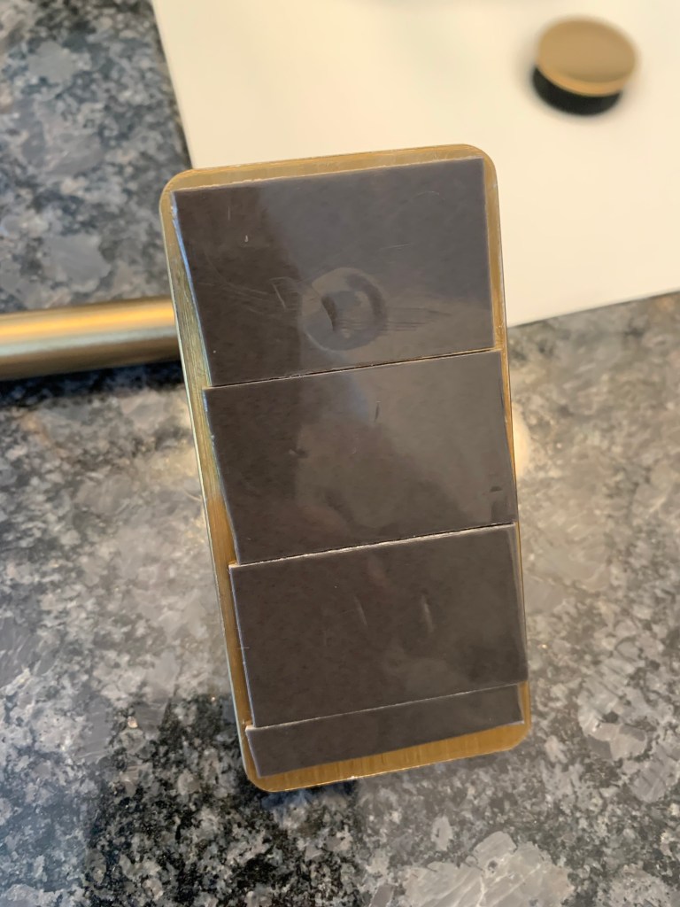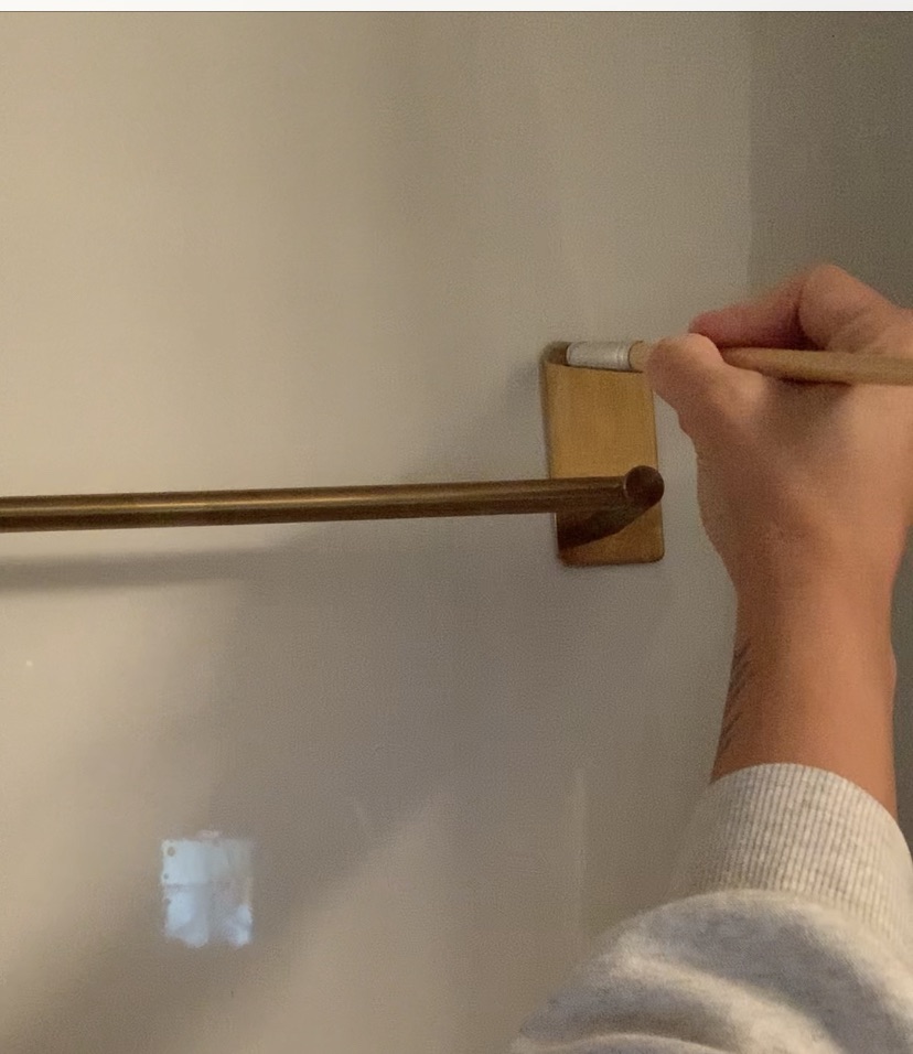 The rack had subpar reviews about the adhesive backing, so I peeled off the backing and replaced it with T-Rex tape that can hold 50lb weight. I added the rack onto the shower wall and allowed it to sit for 24 hours. Once it was set in place, I began to add clear polyurethane to seal the bar. I want to make sure the bar doesn’t rust or discolor, and polyurethane is a great way to prevent this.