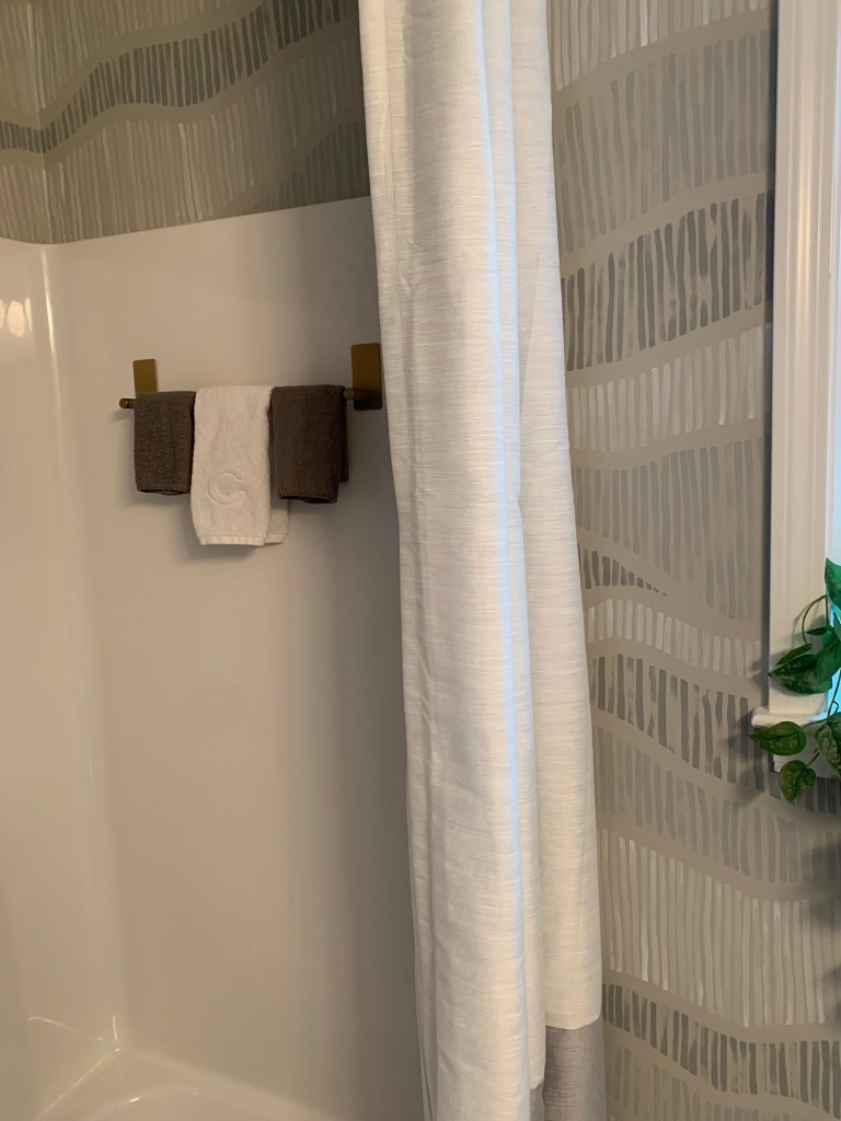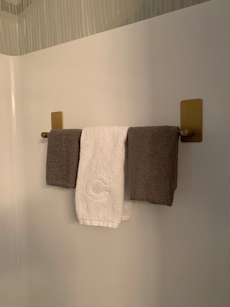 Side note – because of this pivot, I’m also going to add a small towel hook to the wall beside the shower, to serve as a towel holder that the original rack provided. And then I can say that the shower in the kid’s bathroom is officially complete.