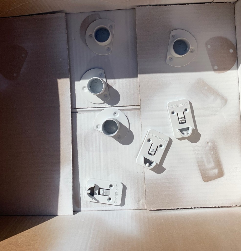 I primed all of the pole brackets and holders and painted all of the brackets and holders the color of the wall and tower, to allow them to blend more easily.