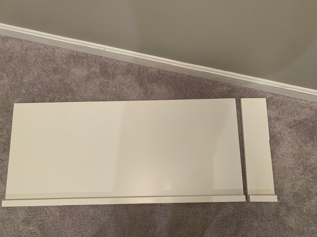 Luckily the excess we trimmed off the two shelves was the exact amount we needed to extend the other pair of shelves.