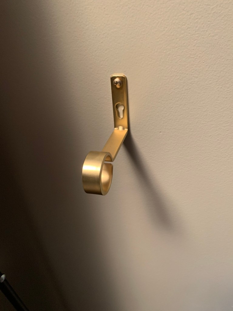 One thing I didn’t buy, but repurposed in the closet were hooks for our clothing. Instead of buying hooks, I used extra curtain rod holders. They are a great because they match the closet color scheme. They are also heavy duty, so they can hold multiple pairs of pants or heavy sweatshirts if needed.