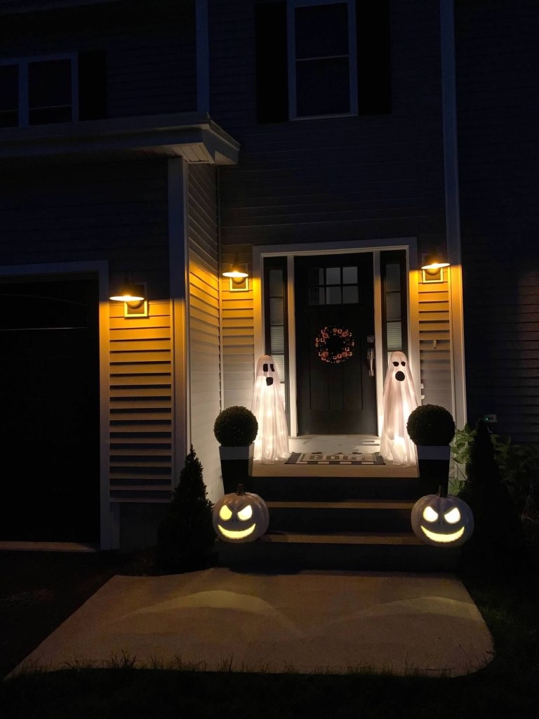The kids enjoy seeing the ghosts so big on the house as we drive into the neighborhood. This was a quick and easy DIY that I feel has a big impact. One that can be used over and over each year.