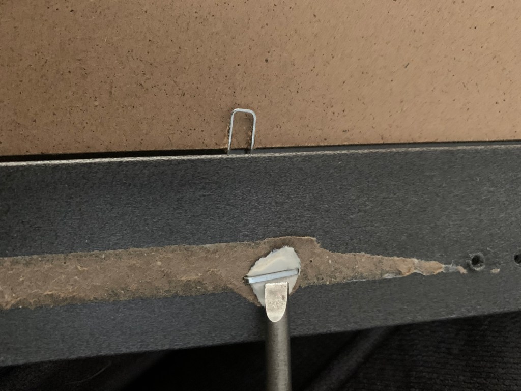 Once the paper backing is off, I used the Flathead screwdriver. I removed all of the extra staples from the frame.