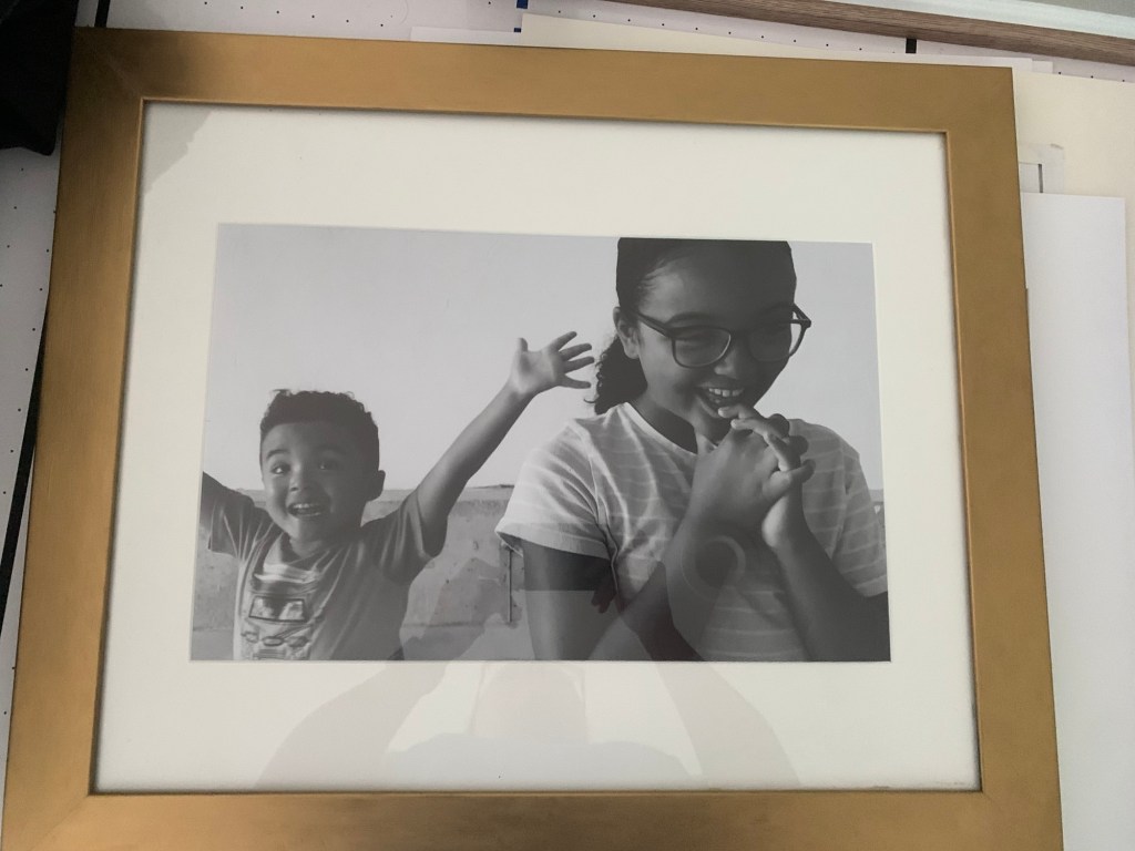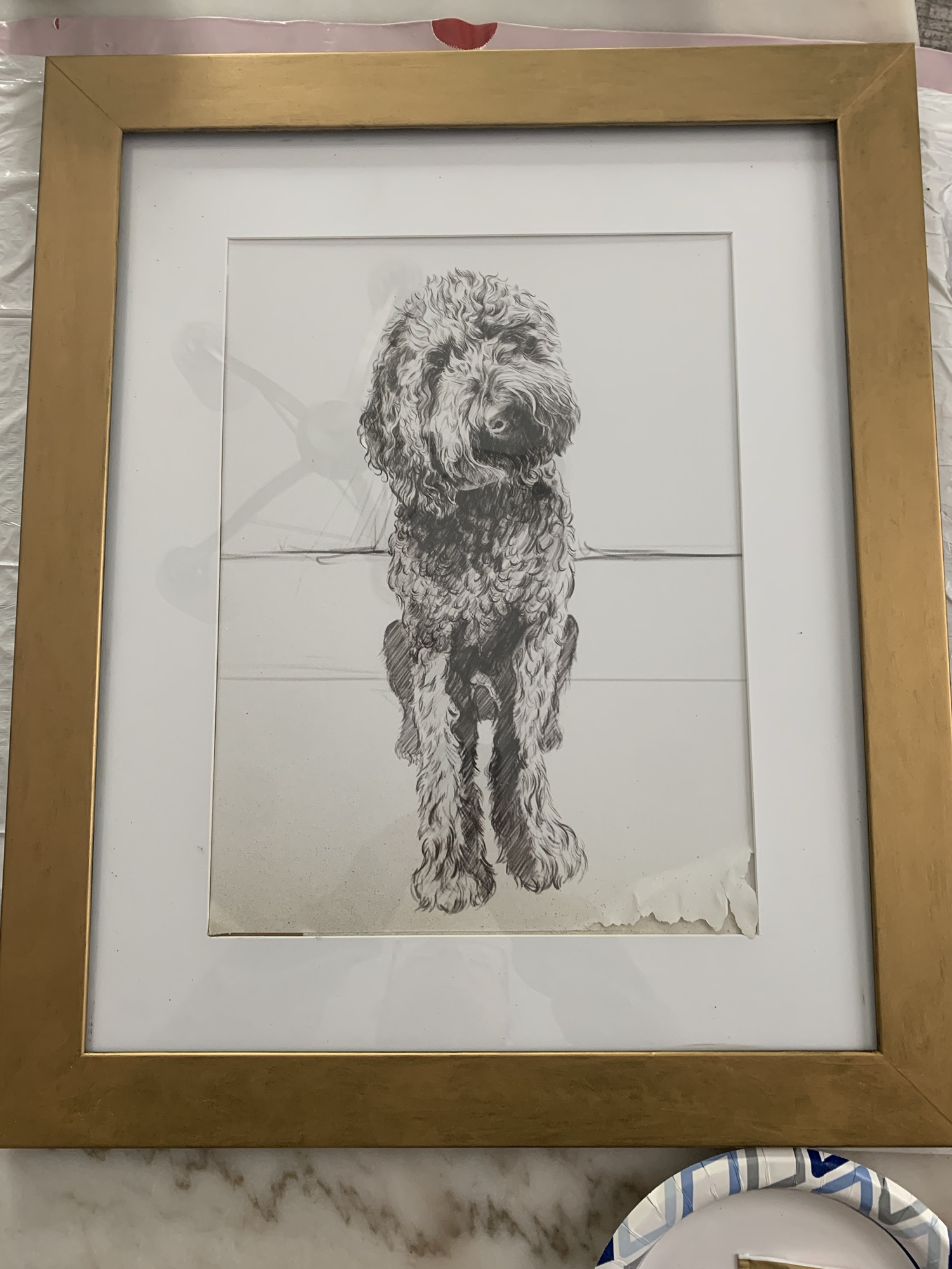The frames I recently changed from black to gold all needed the artwork swapped out. I replaced the images of a dog with our family photos.