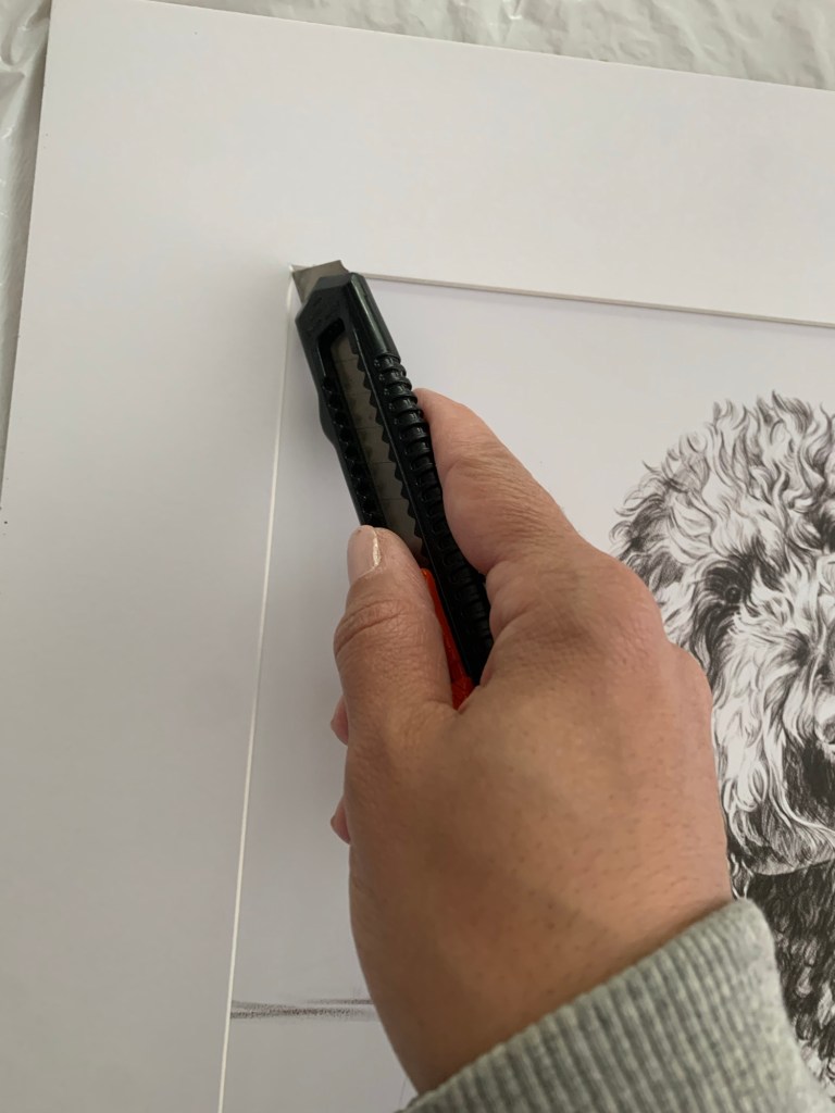 In some instances, the artwork will be taped to the mat. If it is, use a utility knife, or Exacto knife to cut the artwork away from the mat.