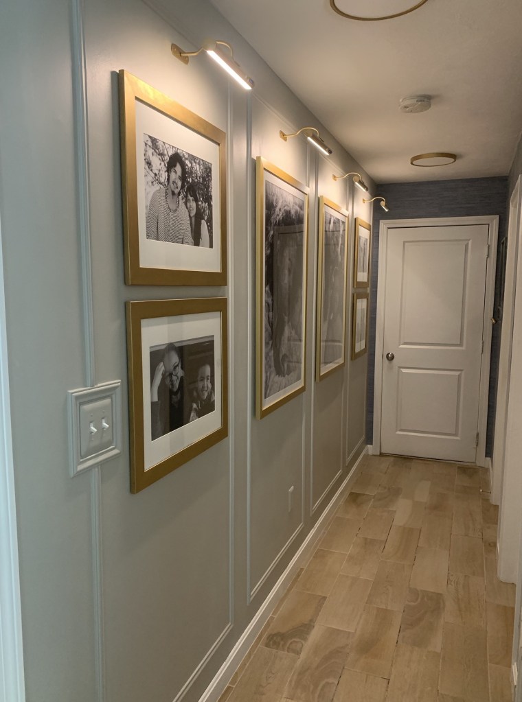 And here is the “in progress” hallway- this week we hung the frames and artwork.