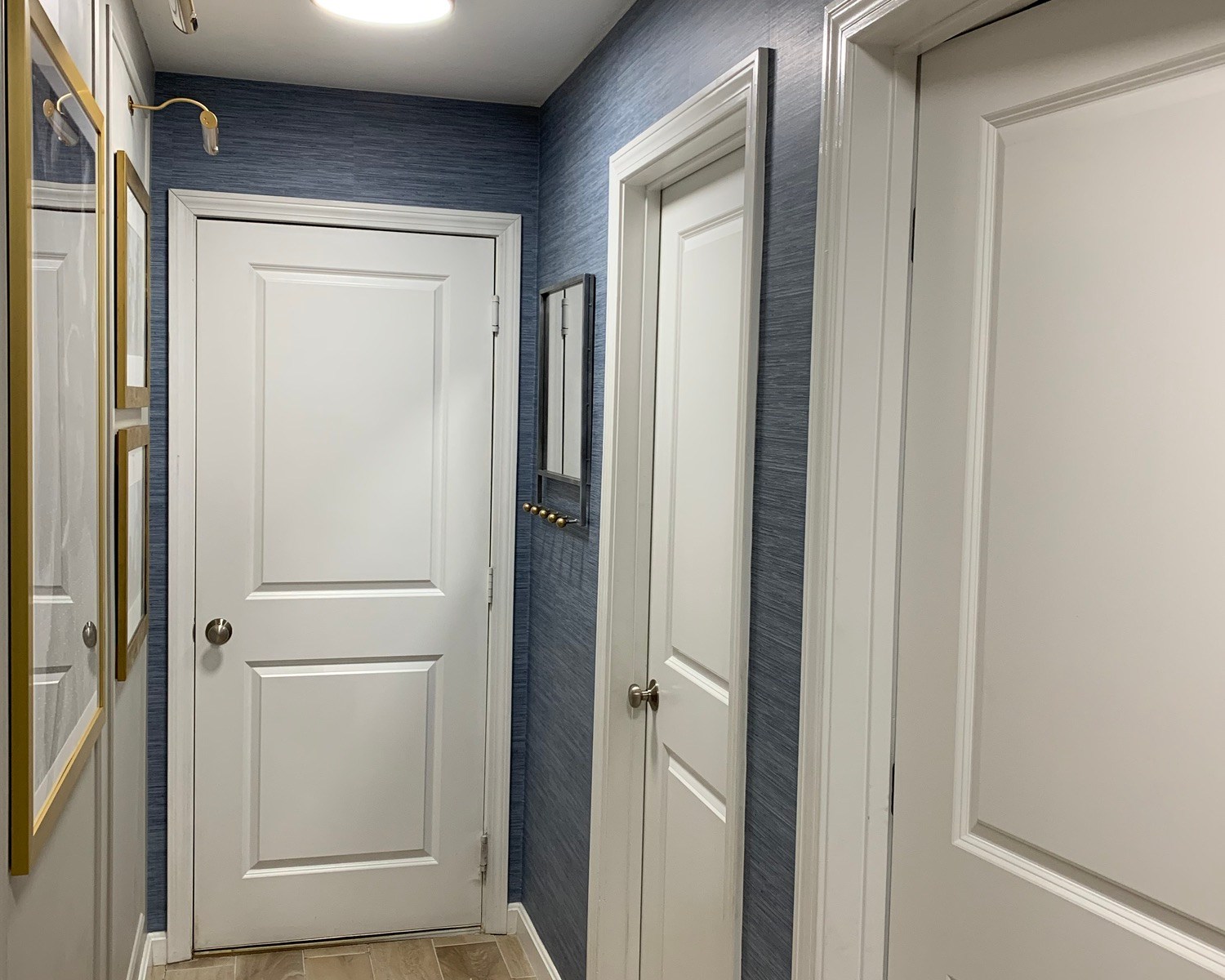Working on the frames and artwork for the hallway took more time than I anticipated. It included changing the frame color. We also swapped out the artwork and found custom frames. Creating the artwork to go into the frames was another task, I’ll share in a later post.