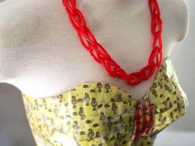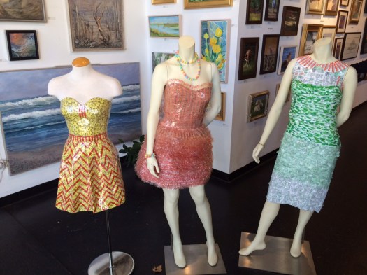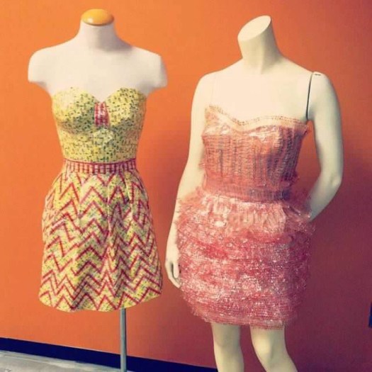 June created her second wearable art piece. A Mary Jane candy wrapper dress. Using different folding techniques, she created a multi-patterned dress.